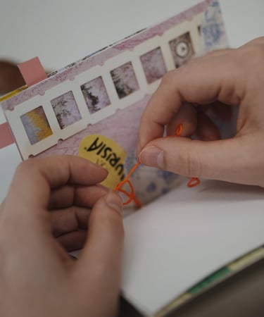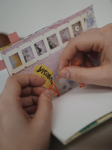 Koliažų knygų (zine) rišimas
