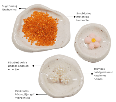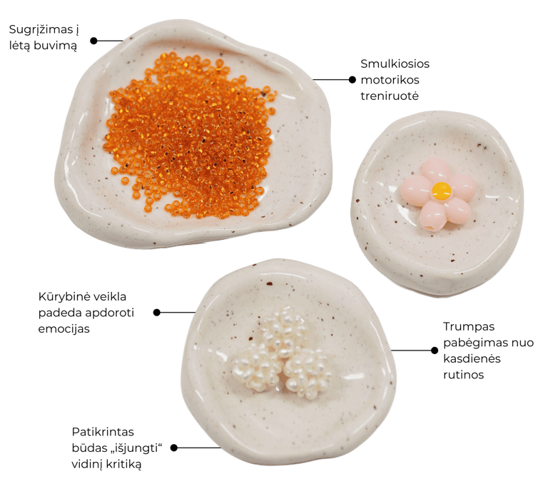 Iš pirmo žvilgsnio – tik smulkūs karoliukai, bet iš tiesų, ramus laikas sau, kai mintys nurimsta, o dėmesys grįžta į rankas.