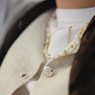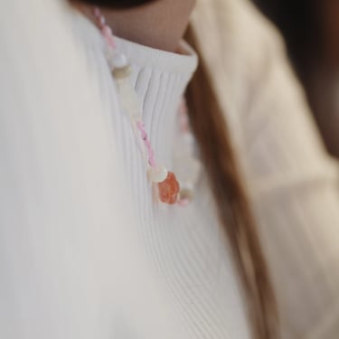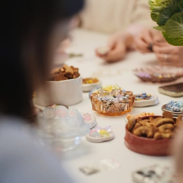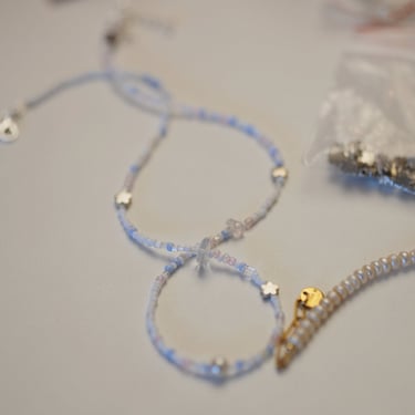 Visa kūrybai reikalinga medžiaga jau laukia vietoje – nuo karoliukų ir pakabukų iki siūlų, grandinėlių ir kitų mažų detalių, kurios kviečia liesti ir derinti. Jei turi savo smulkmeną, kurią norisi įpinti, atsinešk. Jei ne, viskas gerai ir taip.