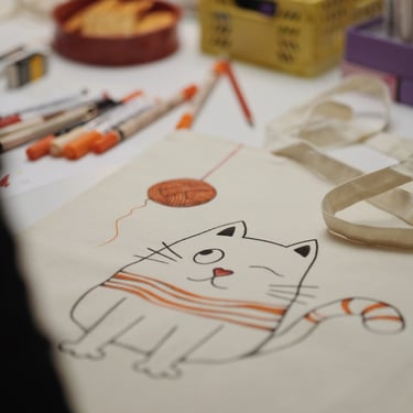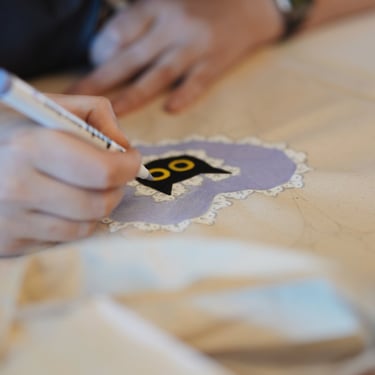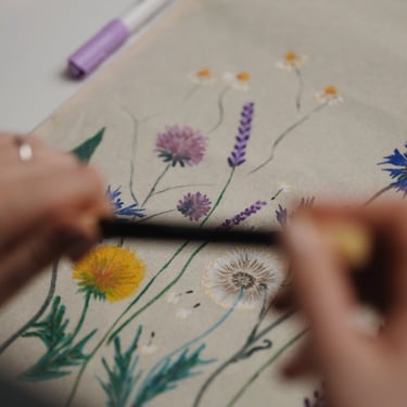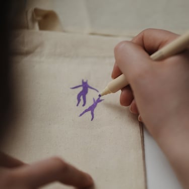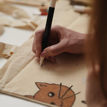 Piešiant ant audinio ne viską galima kontroliuoti, ir tame slypi šio proceso smagumas. Markerio linija gyvena savo ritmu, o ranka pamažu išmoksta pasitikėti tuo, kas atsiranda be nuolatinio taisymo ir grįžimo atgal. Čia piešimas tampa būdu pailsėti.